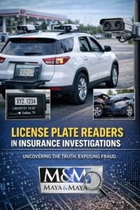 At Maya & Maya, Inc., License Plate Readers are deployed strategically and lawfully to support insurance-related investigations, providing objective data that strengthens claim decisions, supports litigation defense, and accelerates resolutions.